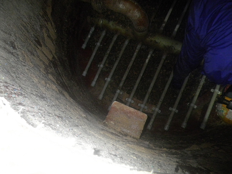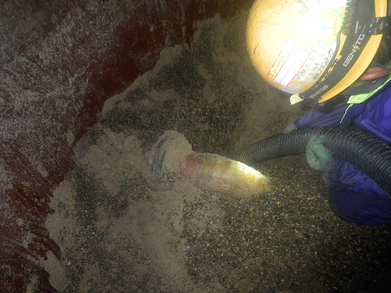 タンク内ろ材取り出し中